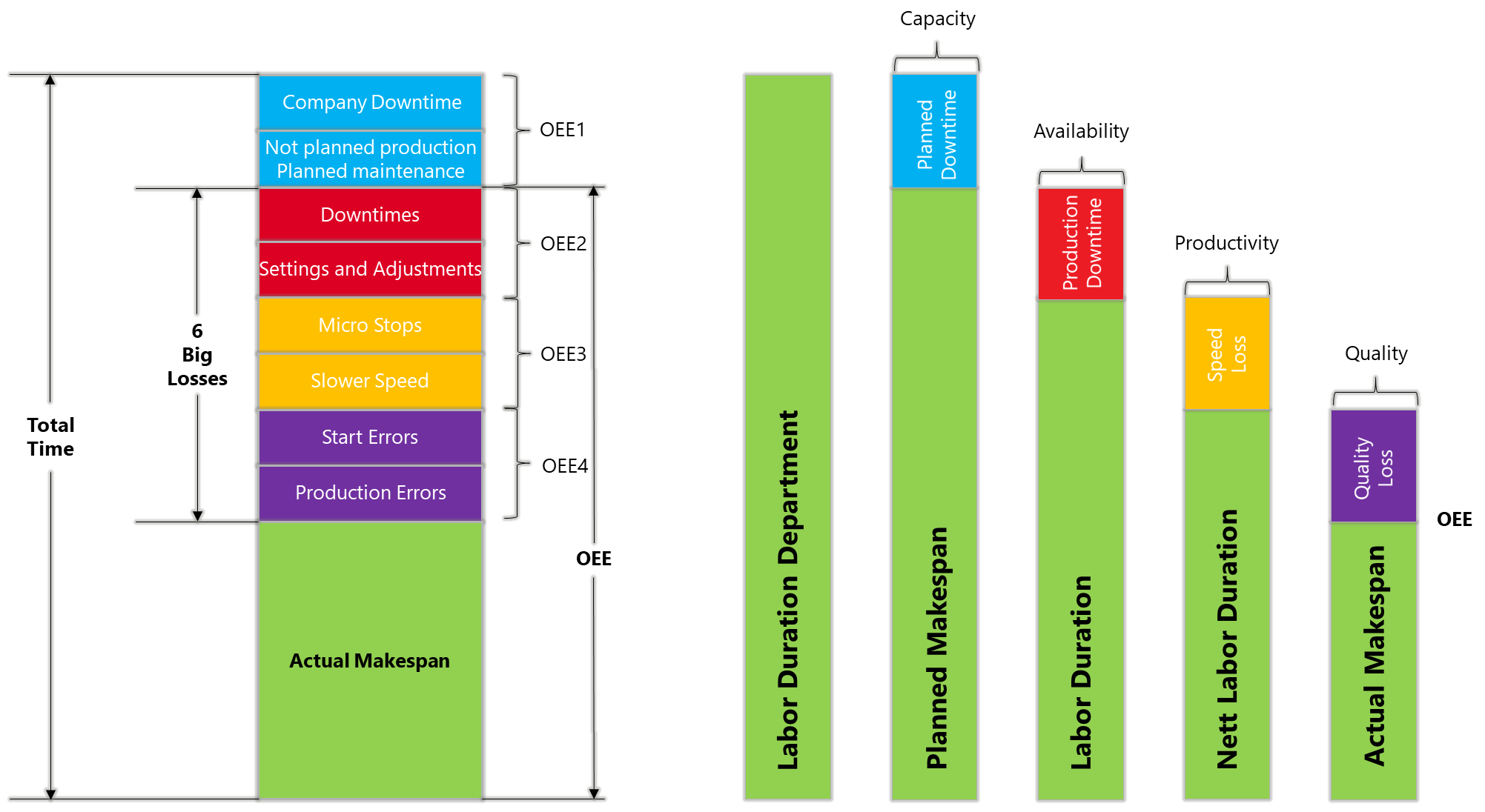In the following paragraphs, the composition of the OEE figures within Objective is described.